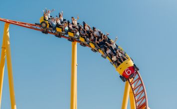 Aurez-vous le cran de devenir un intrépide pilote ? La Turbot Course n°6 entraîne le train de ce Rollercoaster à plus de 76 km/h sur un circuit qui a été conçu spécifiquement pour ressembler à une voiture de course